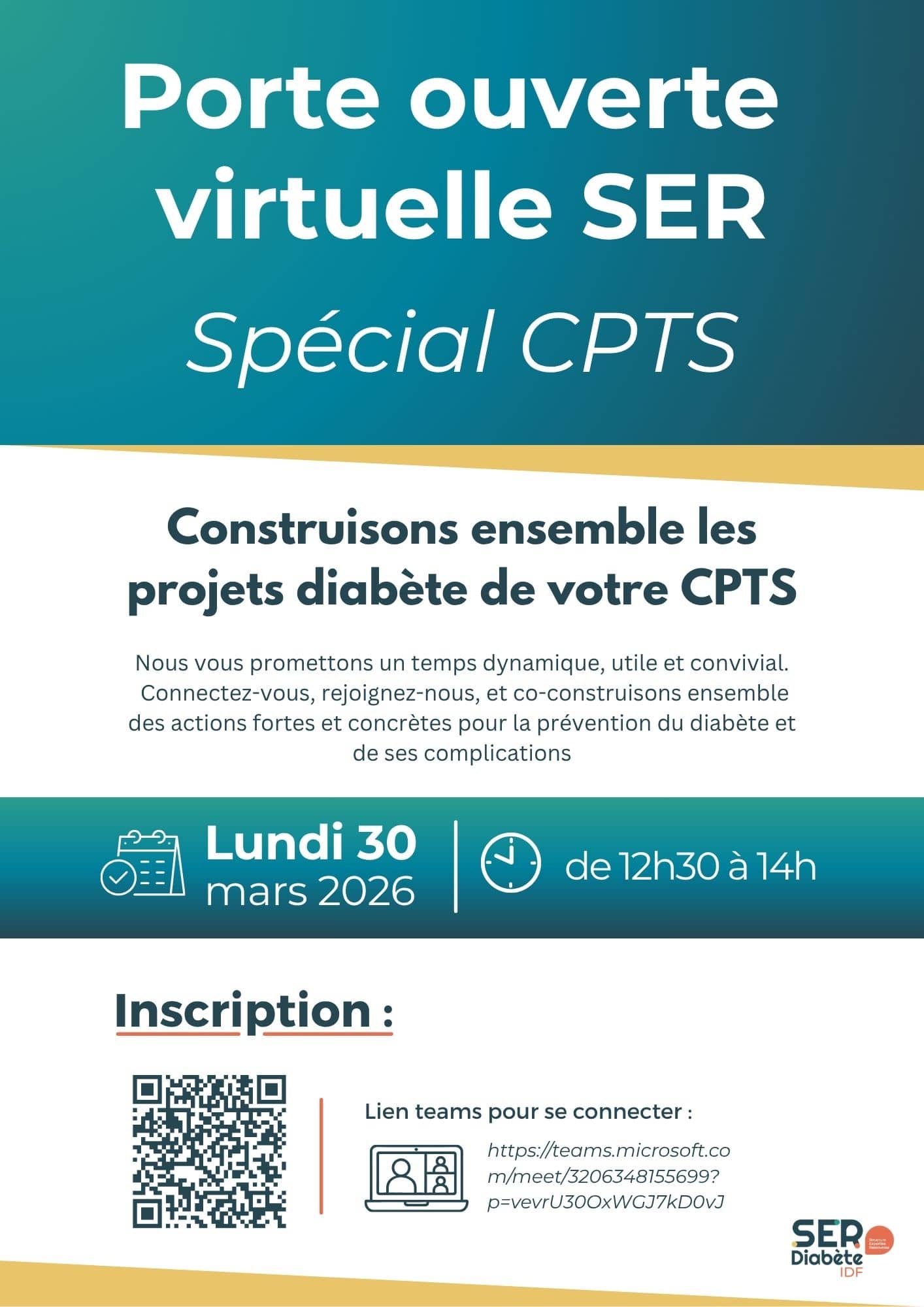 Le programme de la SER Diabète IDF, (pour les personnes diabétiques de type 2), est mis à disposition et est modulable en fonction des besoins des patients du territoire.